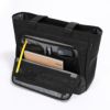 ●前面にフォールディングフロントポケットをレイアウト。開口部が大きく開き前面部分が口折れするので出し入れしやすく収納物の視認性も抜群です。前面側は上下のファスナーが開閉しどちらからも出し入れ可能な2つに分かれたファスナーメッシュポケット、背面側には一番奥にはファスナーポケット・ 手前には収納物の視認性の高いメッシュのオープンポケット×2とペン差し×2、キーフック×1を配置。ビジネスツールの収納に最適で、小さなモバイルワークステーションを形成できます。