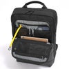 ●前面にフォールディングフロントポケットをレイアウト。開口部が大きく開き前面部分が口折れするので出し入れしやすく収納物の視認性も抜群です。 前面側は上下のファスナーが開閉しどちらからも出し入れ可能な2つに分かれたファスナーメッシュポケット、背面側には一番奥にはファスナーポケット・ 手前には収納物の視認性の高いメッシュのオープンポケット×2とペン差し×2、キーフック×1を配置。 ビジネスツールの収納に最適で、小さなモバイルワークステーションを形成できます。