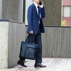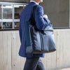 ●キャリーオン機能付きなので、出張などでのキャリーケースとの併用も可能です。バッグの背面にキャリーケースのバーを通し、簡単にセットアップできます。両手がふさがらないので便利です。