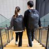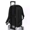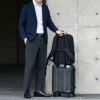 ●キャリーオン機能付きなので、出張などでのキャリーケースとの併用も可能です。リュックの背面にキャリーケースのバーを通し、簡単にセットアップできます。両手がふさがらないので便利です。