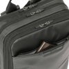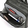 ●二層式の前面側メインルームはスマートフォンやデジタルガジェット類の収納に便利なマルチポケットレイアウト。(前面側にファスナーポケット/衣類収納スペース×1・その手前にメッシュファスナーポケット×1、背面側にファスナーポケット×1・その手前にメッシュオープンポケット×2、サイドにボトルホルダー×1) 小物など整理整頓しやすく実用性の高いポケットを各所に配置することでビジネスをより快適にサポートします。