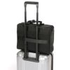 ●キャリーオン機能付きなので、出張などでのキャリーケースとの併用も可能です。バッグの背面にキャリーケースのバーを通し、簡単にセットアップできます。両手がふさがらないので便利です。