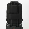 ●キャリーオン機能付きなので、出張などでのキャリーケースとの併用も可能です。バッグの背面にキャリーケースのバーを通し、簡単にセットアップできます。両手がふさがらないので便利です。