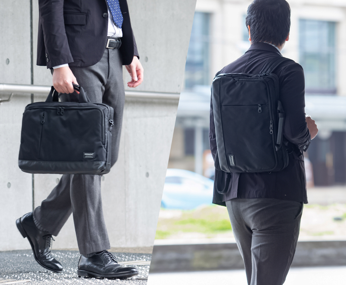 2WAY・3WAYのビジネスリュックは、ビジネスシーンにおいて大変便利なアイテムです。通勤時や出張時に必要な荷物をたっぷりと入れられるだけでなく、スマートなデザインで日々のビジネスシーンでも便利にお使いいただけます。