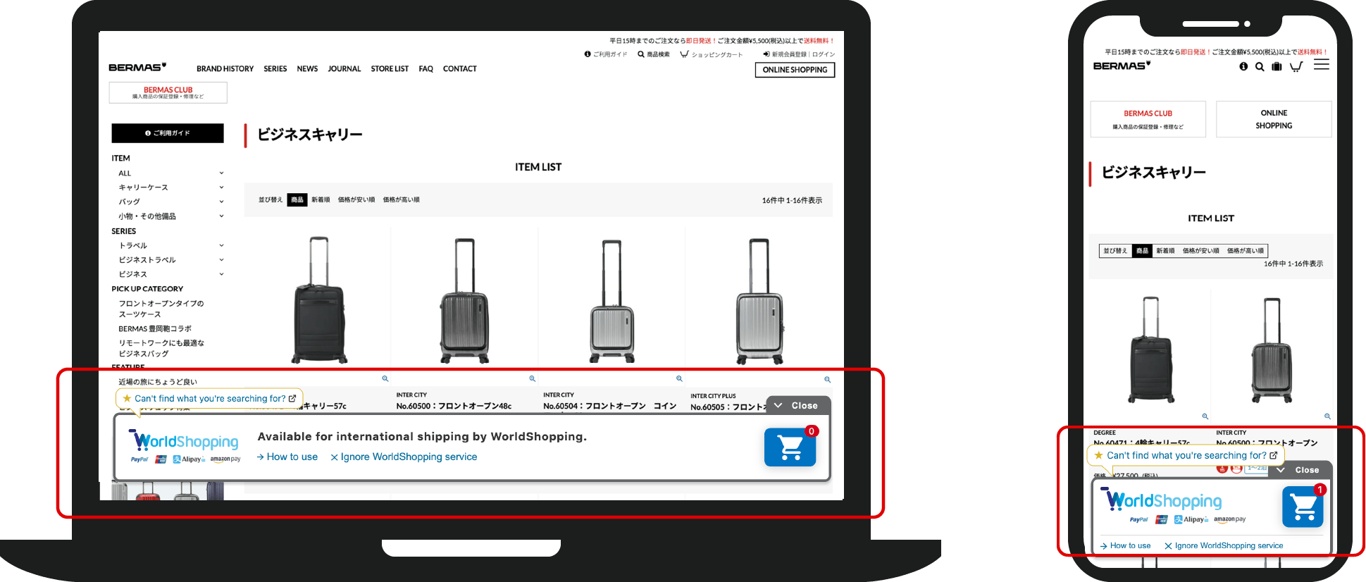 - When you access the website from overseas, the “WorldShopping Cart” will be displayed automatically.
