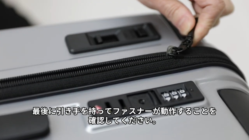 引き手を持ってファスナーが動作することを確認する。